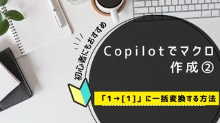 Copilotでマクロ作成 Copilotでマクロ作成②:1→[1]に一括変換する方法 Excelで「1」を「[1]」に一括変換したい?Copilotを使えば、マクロの知識がなくても簡単に自動作成!初心者向けにやさしく解説します。 2025.11.19 Copilotでマクロ作成